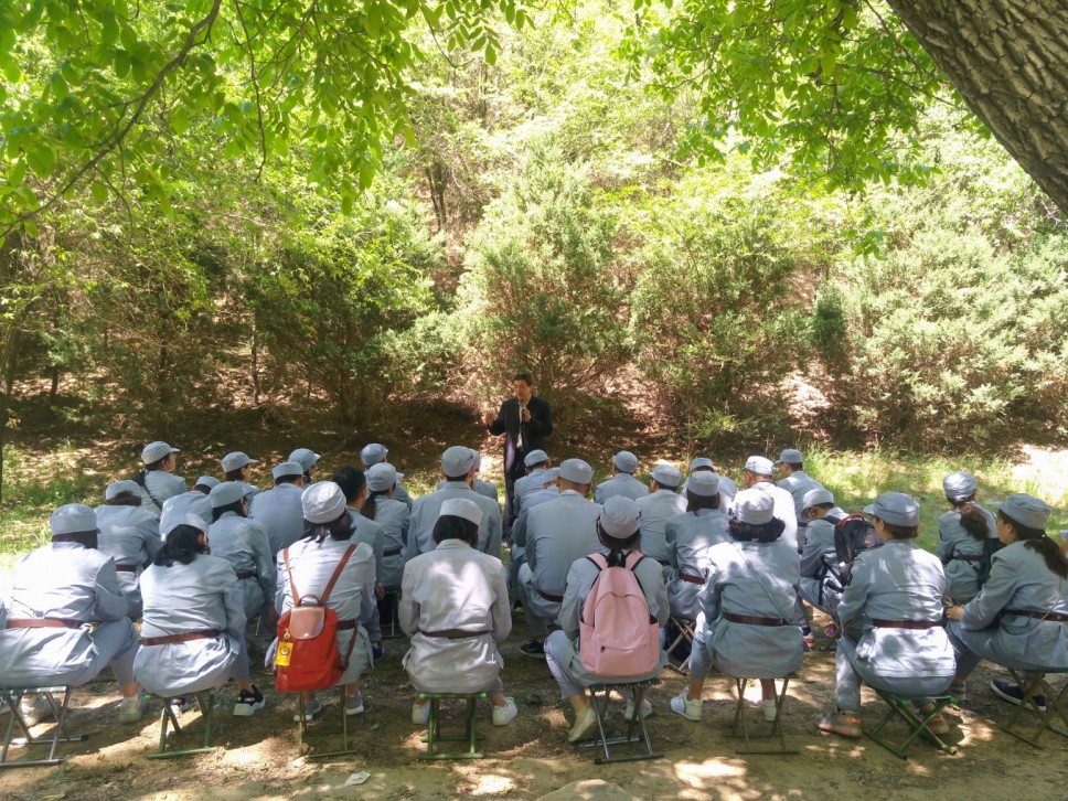 每到一處革命舊址,我們都要坐在小板凳上,聆聽各個老師的悉心教學,仿佛回到了那個年代,即使風吹日曬,即使條件艱苦,學習的熱情也永不退減。在張思德雕像下,郭隨萬老師的《張思德及其為人民服務(wù)精神啟示》主題黨課,讓我們深刻理解了張思德精神的內(nèi)涵:對工作毫無怨言,勤勤懇懇踏踏實實工作的精神;對同志真心誠意,處處與人為善,時時助人為樂的精神;對人民盡心盡力,一心一意為人民服務(wù)的精神。革命時期的共產(chǎn)黨員,他們?yōu)榱它h,為了人民,隨時可以奉獻自己的一切;他們就像“清涼山上的草一樣”,平凡、普通,思想?yún)s偉大、高尚。在楊家?guī)X的樹蔭下,霍雯老師的《延安時期水乳交融的黨群干群關(guān)系》主題黨課,生動活潑地講述了延安時期黨中央及毛澤東等領(lǐng)導(dǎo)干部通過擁民、愛民、與人民群眾建立起水乳交融、血肉相連的關(guān)系,我們的革命才逐漸由弱到強,由局部勝利到逐步取得全面勝利。在棗園的墻邊,劉金峰老師的《窯洞里有馬列主義》主題黨課,詼諧幽默的小故事講述了毛澤東在山溝溝里的窯洞中,領(lǐng)導(dǎo)全黨學馬列、用馬列,創(chuàng)作了大量馬克思主義中國化的著作的艱苦奮斗場景。如今我們在享受革命勝利果實的時候,莫忘“又學習,又玩?!保`行群眾路線,莫忘全心全意為人民服務(wù)。